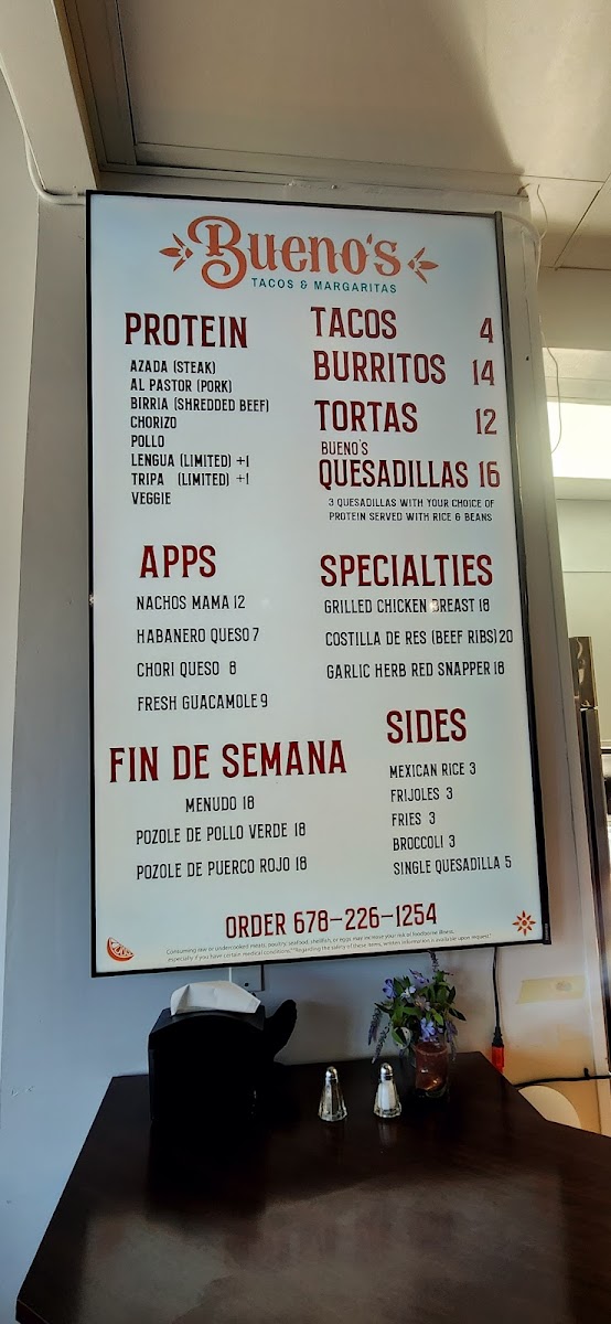 Welcome to Bueno's Tacos & Margaritas, a vibrant culinary haven located at 3631 Peachtree Industrial Blvd in Duluth, GA. This family-run gem brings the rich flavors of Mexican cuisine to life with an array of mouthwatering offerings.